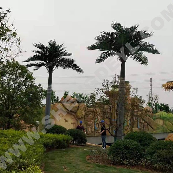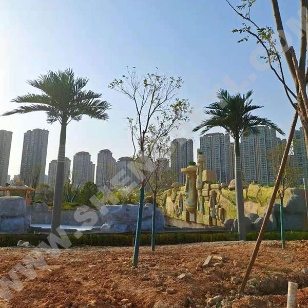 仿真椰子樹通常用于不適合種植椰子樹的地區(qū),它們樹干光滑,接近筆直,樹葉從樹頂“炸”出來,活像過年放的禮花。酒店、景點、游樂場、社區(qū)等地方用來營造南亞熱帶風(fēng)情是再適合不過了。