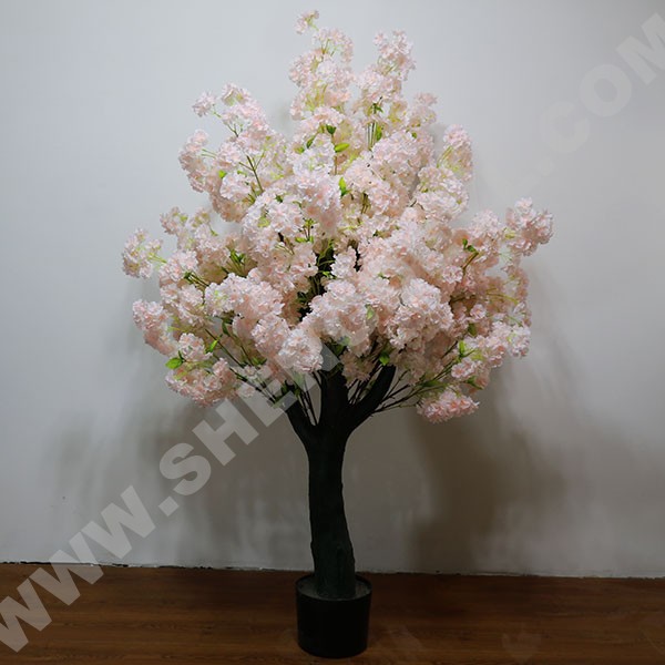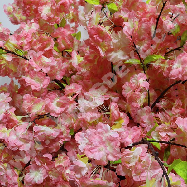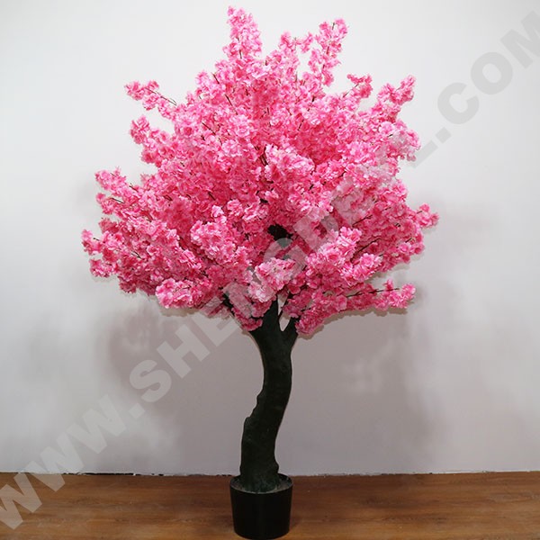 加密櫻花盆栽采用璃鋼樹脂樹桿結構,采用高性能環氧樹脂和玻璃纖維纏繞成型,樹桿內采用國標鋼結構,樹葉采用ABS塑料或PU等高性能防阻燃環保材料。